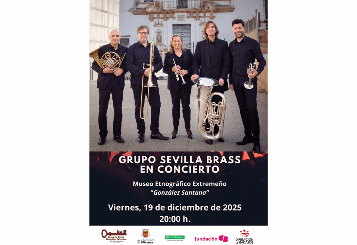El próximo 19 de diciembre de 2025, a las 20,00 horas, en la planta baja de la Torre del Homenaje, el grupo Sevilla Brass, dedicado a la interpretación de música de Cámara escrita, adaptada para instrumentos de viento metal, nos deleitará con un ameno concierto de Navidad que recoge la tradición musical navideña centro europea, anglosajona y española, que hos harán rememorar valses, pegadizos christmas y villancicos populares.