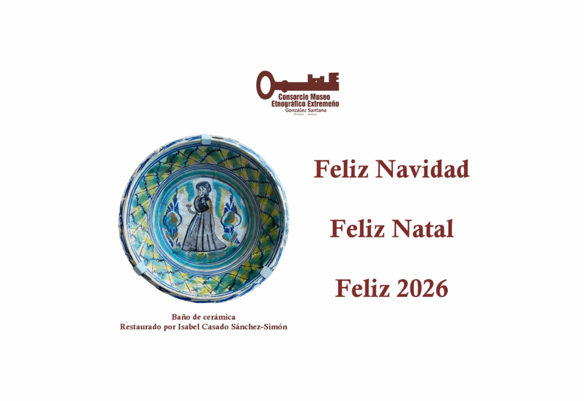 Este año hemos escogido un baño de cerámica, donado por Ramón Aranguren García en junio de 1994 y restaurado recientemente por la empresa 𝐈𝐬𝐚𝐛𝐞𝐥 𝐂𝐚𝐬𝐚𝐝𝐨. 𝐂𝐨𝐧𝐬𝐞𝐫𝐯𝐚𝐜𝐢ó𝐧 𝐲 𝐑𝐞𝐬𝐭𝐚𝐮𝐫𝐚𝐜𝐢ó𝐧 𝐁𝐈𝐂, para ilustrar la felicitación navideña. La Dirección y el personal del Museo Etnográfico Extremeño «González Santana» de Olivenza, desea a todos sus visitantes y amigos 𝙁𝙚𝙡𝙞𝙯 𝙉𝙖𝙫𝙞𝙙𝙖𝙙 𝙮 𝙪𝙣 𝙥𝙧ó𝙨𝙥𝙚𝙧𝙤 𝙖ñ𝙤 2026.