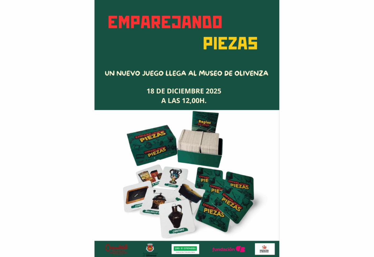 El próximo 18 de diciembre, a las 12,00 horas, en la planta baja de la Torre del Homenaje, tendrá lugar la presentación del juego de memoria Emparejando piezas, ideado por el Equipo de Didáctica del MEEGS y editado por la empresa ADAPTARE SOLUCIONES DE INTEGRACIÓN S.L., a la que agradecemos su buen hacer.